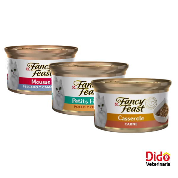 FANCY FEAST Es una comida en lata para gatos que se realiza con el fin de satisfacer a los paladares mas exigentes que prefieren pequeños y tiernos filetes acompañados de una salsa, este alimento asegura una dieta balanceada y completa con el fin de que tu peludo se sienta satisfecho con su comida y a la vez saludable, con delicioso sabores.