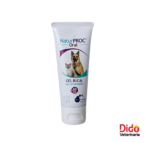 Naturproc Gel Oral 60 ml es un medicamento veterinario de origen natural en forma de gel, diseñado para el cuidado e higiene bucal de mascotas como perros y gatos. Actúa como coadyuvante en el tratamiento de enfermedades periodontales, ayudando a mejorar la salud de las encías y la cavidad oral.